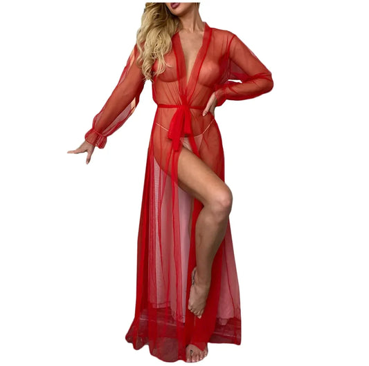 Sexy Hot Erotic Women Nightwear Long Mesh Sleepwear Long NightGowns See Through Sheer Mesh Night Dress CH # 341