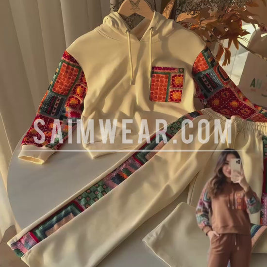 CH-597 Ethnic Print Fleece Co-ord Set For Women’s - Saimwear